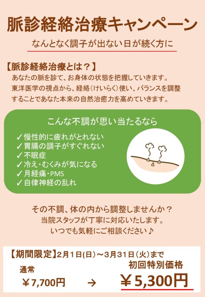 脈診経絡治療キャンペーンを行っています✨