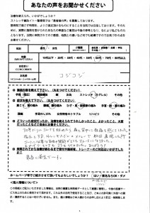 木更津市 60代自営業男性コジコジ 2015.06.13ひざ・足・股関節の痛み / 手首・肘・肩の痛み / 肩こり、首の痛み / 腰痛、腰の痛み / 頭痛 30年ぶりにゴルフを始めたら、肩と背中に激痛を感じてしまった。指圧と3D、ストレッチホグレルのメニューで数回通院した所、ゴルフに必要な筋肉や関節がとてもスムーズになりました。おかげでスコアも23も縮みました。ありがとう! 最高に満... 続きを読む